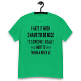 This sarcastic unisex tee is perfect for anyone who wears a smile while their brain hits the mute button. Soft, breathable cotton with a relaxed fit — great for work meetings, family gatherings, or any situation demanding forced politeness.