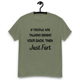 Perfect clapback energy in one sentence: “If people are talking behind your back, then just fart.” This hilariously petty tee is for anyone who owns their shade and responds with zero words and maximum chaos. Made from soft, breathable cotton with a relaxed unisex fit, it’s comfy enough for everyday wear and loud enough to do the talking for you. Wear it to parties, family gatherings, or anywhere gossip lingers — let passive aggression be your signature move.