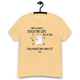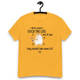 “For all the people who leave you drained—if they’re gonna suck the life out of you, they might as well take some fat too.” This cheeky, dark-humored tee pairs savage honesty with comfy, soft cotton. Perfect for anyone who’s learned the hard way that emotional vampires should at least do you one favor. Relaxed unisex fit, bold typography — makes a great gift for the petty and proud.