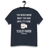 You never truly appreciate life’s luxuries… until the toilet paper runs out. This “You Never Know What You Have Until It’s Gone – Toilet Paper, For Instance” T-shirt brings bathroom humor to everyday fashion. Perfect for anyone who loves a good laugh and a dose of sarcasm, this funny graphic tee is a conversation starter wherever you go.
