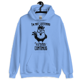 Stay cozy and make a statement with this unisex hoodie. Featuring the witty phrase ‘I Am Not Listening But Please Continue’, it’s perfect for casual wear, laid-back vibes, and a touch of humor in your everyday style