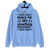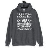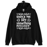 Witty, bold, and a little savage — this unisex hoodie says ‘Shock Me, Say Something Intelligent.’ Perfect for anyone who loves sarcasm served with style.