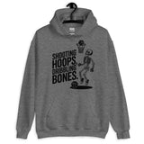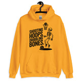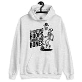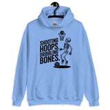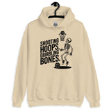 Sporty with a spooky twist — this unisex hoodie features ‘Shooting Hoopes, Dribbling Bones’. Perfect for anyone who loves mixing hoops with a little skeleton humor.
