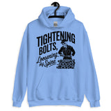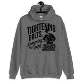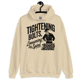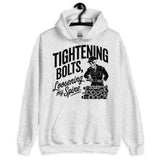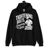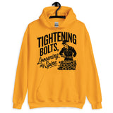 Workwear humor meets cozy comfort — this unisex hoodie says ‘Tightening Bolts, Loosening My Spine.’ Perfect for mechanics, DIY lovers, or anyone who knows the grind all too well.