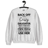 This sweatshirt is perfect for parents with a sense of humor and a daughter who doesn’t tolerate nonsense. The quote is bold, playful, and guaranteed to get a laugh from anyone who knows the struggle of raising a fiery kid.