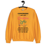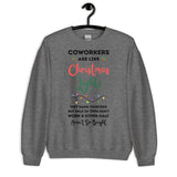 For the people who drag themselves to work every day and somehow survive the circus. This sweatshirt says what everyone’s thinking but can’t say out loud: “Coworkers are like Christmas lights — they hang together, but half of them don’t work and the other half aren’t so bright.”