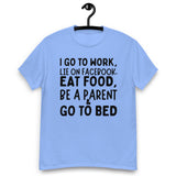 Life in one sentence — work, scroll, snack, parent, repeat. This hilarious, relatable t-shirt perfectly sums up adult life in the social media age. Made from soft, breathable cotton, it’s your go-to uniform for surviving another day of multitasking madness. Whether you’re wearing it to work, lounging at home, or running on caffeine and chaos, this tee keeps you comfy and real.