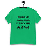 Perfect clapback energy in one sentence: “If people are talking behind your back, then just fart.” This hilariously petty tee is for anyone who owns their shade and responds with zero words and maximum chaos. Made from soft, breathable cotton with a relaxed unisex fit, it’s comfy enough for everyday wear and loud enough to do the talking for you. Wear it to parties, family gatherings, or anywhere gossip lingers — let passive aggression be your signature move.
