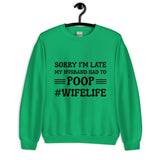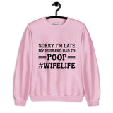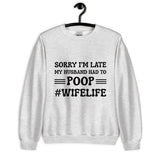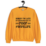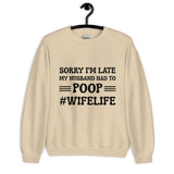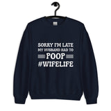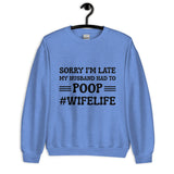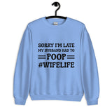 This sweatshirt is perfect for wives who are always running late for the most ridiculous (but totally real) reasons. The quote is funny, honest, and instantly relatable to anyone living with a man who somehow always picks the worst timing.