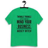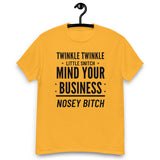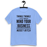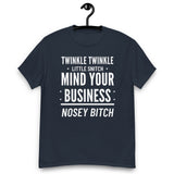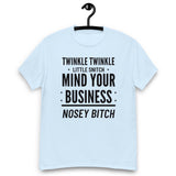 A remix nobody saw coming — this “Twinkle Twinkle Little Snitch, mind your business nosey bitch” t-shirt is the perfect blend of sass and attitude. Designed for those who can’t stand gossip and love speaking their mind, this tee says it all so you don’t have to.