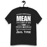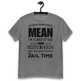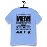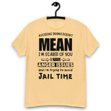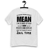 This isn’t fear — it’s self-control. The “Avoiding drama doesn’t mean I’m scared of you, I have anger issues and I’m trying to avoid jail time” t-shirt is made for the real ones who’ve mastered the art of walking away just in time.