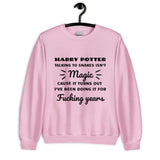 Add some sharp humor to your wardrobe with this unisex sweatshirt featuring Harry Potter talking to snakes isn’t magic — turns out I’ve been doing it for years. Soft, comfy, and perfect for anyone who loves pop-culture jokes with a sarcastic twist. Great for everyday wear, lounging at home, or gifting to someone who deals with ‘snakes’ on a regular basis.