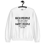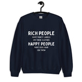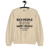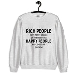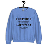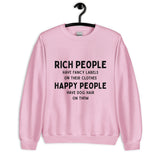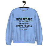 Show off what really matters with this unisex sweatshirt featuring Rich People Have Fancy Labels on Their Clothes, Happy People Have Dog Hair on Them. Soft, warm, and perfect for dog lovers who prefer joy over luxury. Great for casual wear, cozy days, or gifting to anyone whose life (and clothes) are proudly covered in fur.
