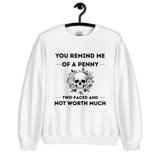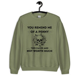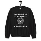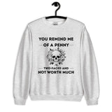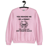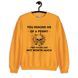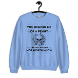 Keep it savage and stylish with our unisex sweatshirt featuring You Remind Me of a Penny — Two Faced and Not Worth Much. Soft, comfy, and perfect for those who love bold humor.