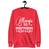 Start your day in comfort with our unisex sweatshirt featuring Allergic to Mornings. Cozy, soft, and perfect for night owls who love humor in their style.