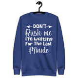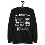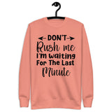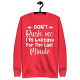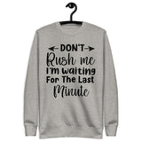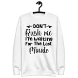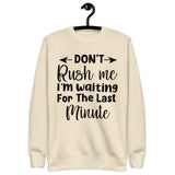 Keep it funny and relatable with our unisex sweatshirt featuring Don’t Rush Me, I’m Waiting for the Last Minute. Cozy, durable, and perfect for procrastinators.