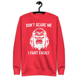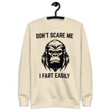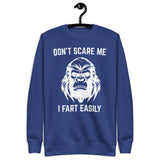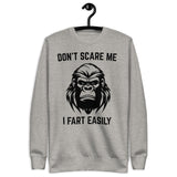 Keep the laughs coming with our unisex sweatshirt featuring Don’t Scare Me I Fart Easily. Cozy, soft, and perfect for anyone who loves funny statement wear.