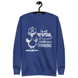 Show off your unapologetic side with our unisex sweatshirt featuring I’m Not Rude, I Just Say What Everyone Else Is Thinking. Cozy, stylish, and full of attitude.