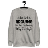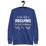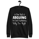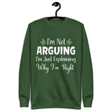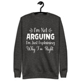 Show off your witty side with our unisex sweatshirt featuring I’m Not Arguing, I’m Just Explaining Why I’m Right. Cozy, durable, and perfect for everyday wear.