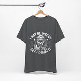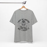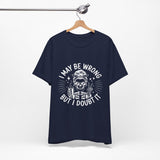 I may be wrong, but I doubt it. This bold unisex tee is made for the confident, the stubborn, and anyone who loves being (mostly) right. Soft, comfy, and guaranteed to turn heads.
