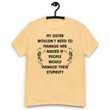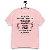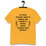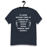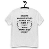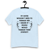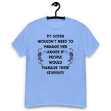 My sister wouldn’t need to manage her anger if people would manage their stupidity. This hilarious unisex tee is perfect for anyone with a short-tempered sibling (or who is that sibling). Soft, comfy, and guaranteed to get laughs.