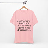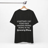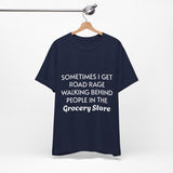 For those who know the struggle—this unisex tee says it all: 'Sometimes I get road rage walking behind people in the grocery store.' A perfect mix of humor and everyday truth, comfy enough for every aisle.