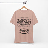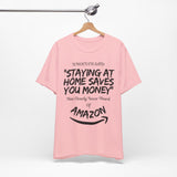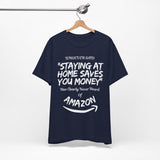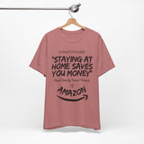 Whoever said ‘staying at home saves you money’ clearly never heard of Amazon. This witty unisex tee is perfect for online shopping addicts who know the struggle of one-click orders all too well. Soft, comfy, and dangerously relatable.