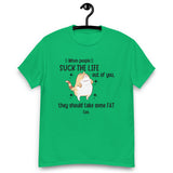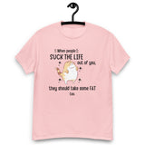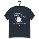 “For all the people who leave you drained—if they’re gonna suck the life out of you, they might as well take some fat too.” This cheeky, dark-humored tee pairs savage honesty with comfy, soft cotton. Perfect for anyone who’s learned the hard way that emotional vampires should at least do you one favor. Relaxed unisex fit, bold typography — makes a great gift for the petty and proud.