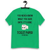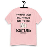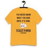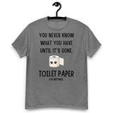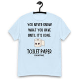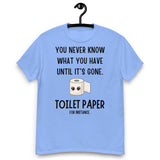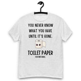 You never truly appreciate life’s luxuries… until the toilet paper runs out. This “You Never Know What You Have Until It’s Gone – Toilet Paper, For Instance” T-shirt brings bathroom humor to everyday fashion. Perfect for anyone who loves a good laugh and a dose of sarcasm, this funny graphic tee is a conversation starter wherever you go.